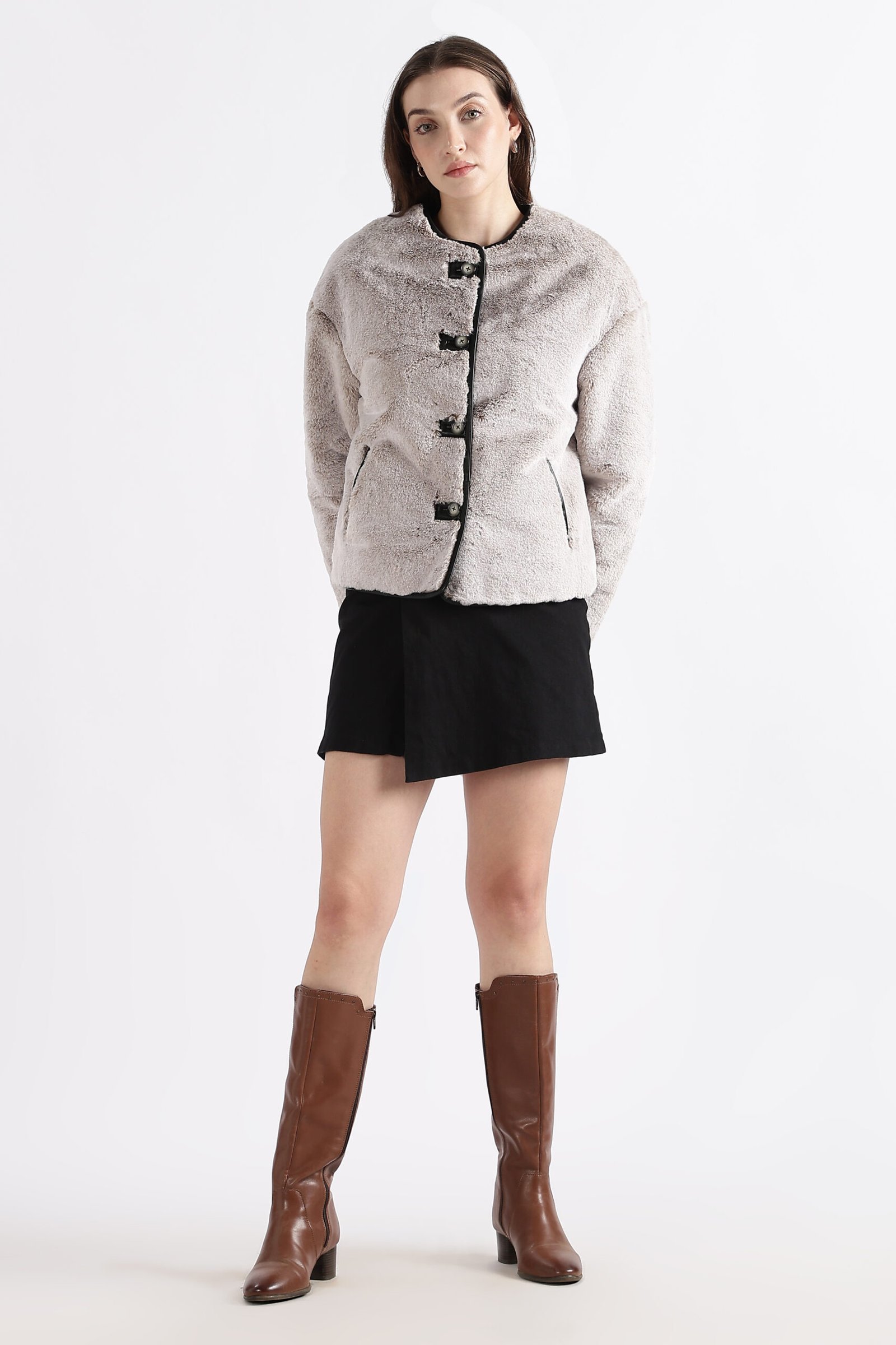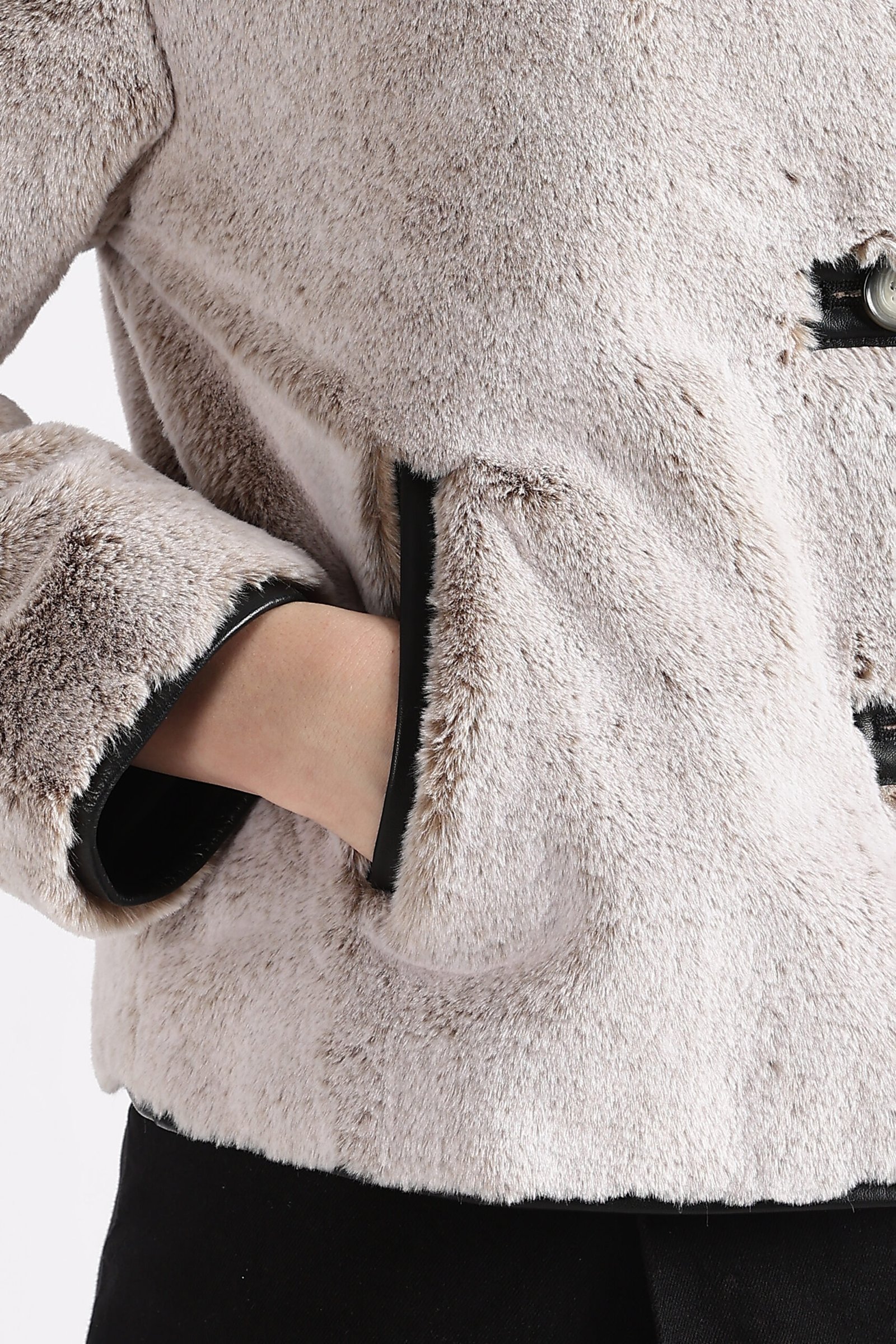 - Body: Faux fur fabric for a textured finish with 100% Sheep Leather